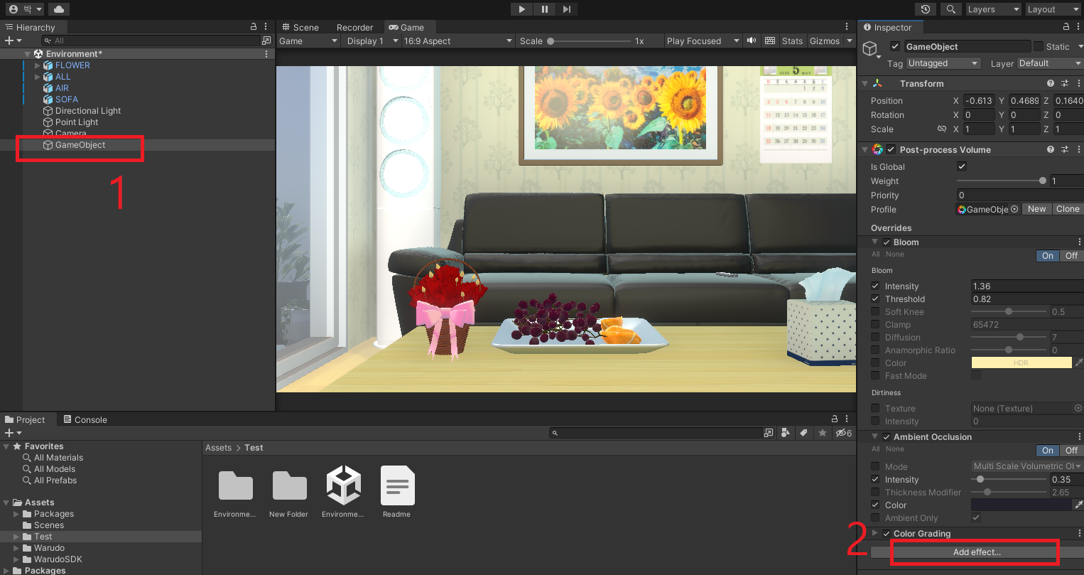 이제 Test 폴더 안에서 우클릭 > Create > Scene 파일을 만들고, 꼭 씬파일은 Environment 라고 이름 지어야한다. 안그럼 오류가 난다!